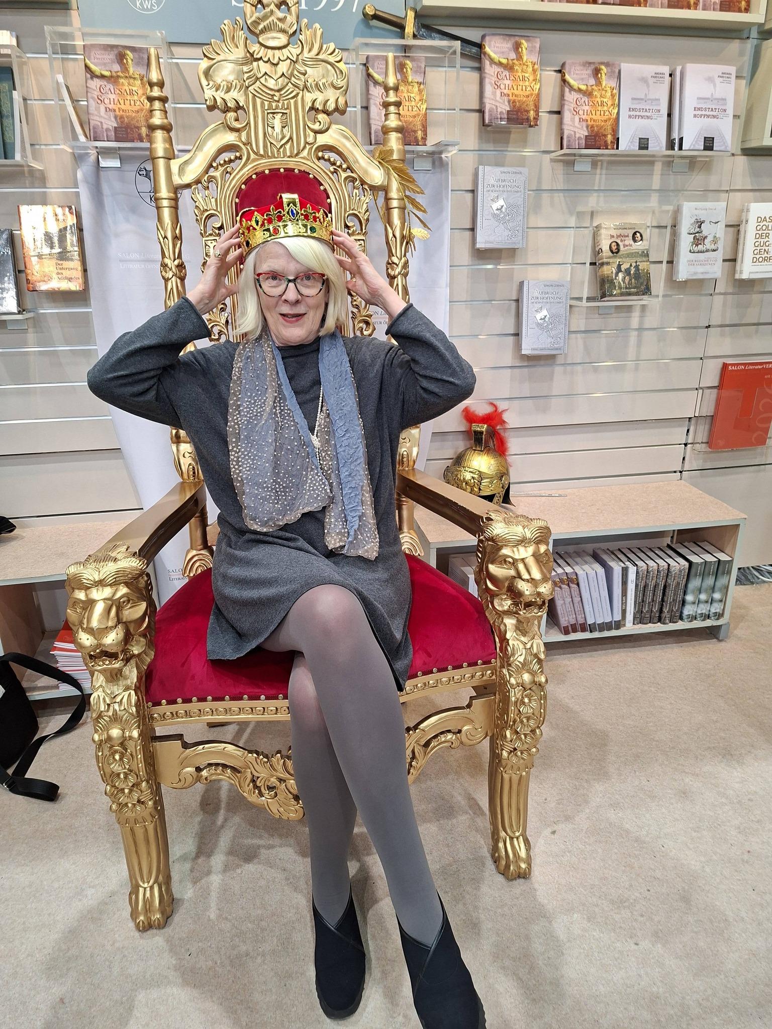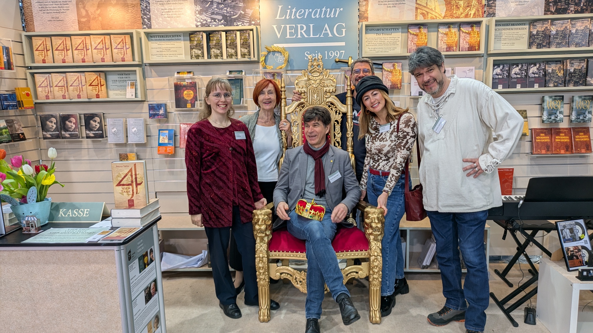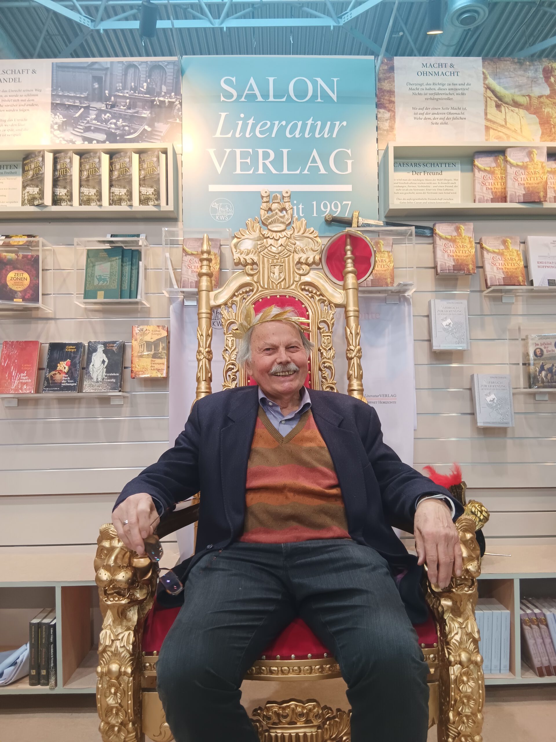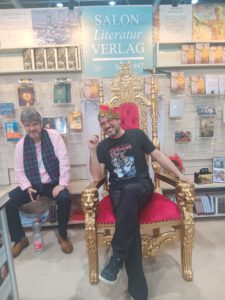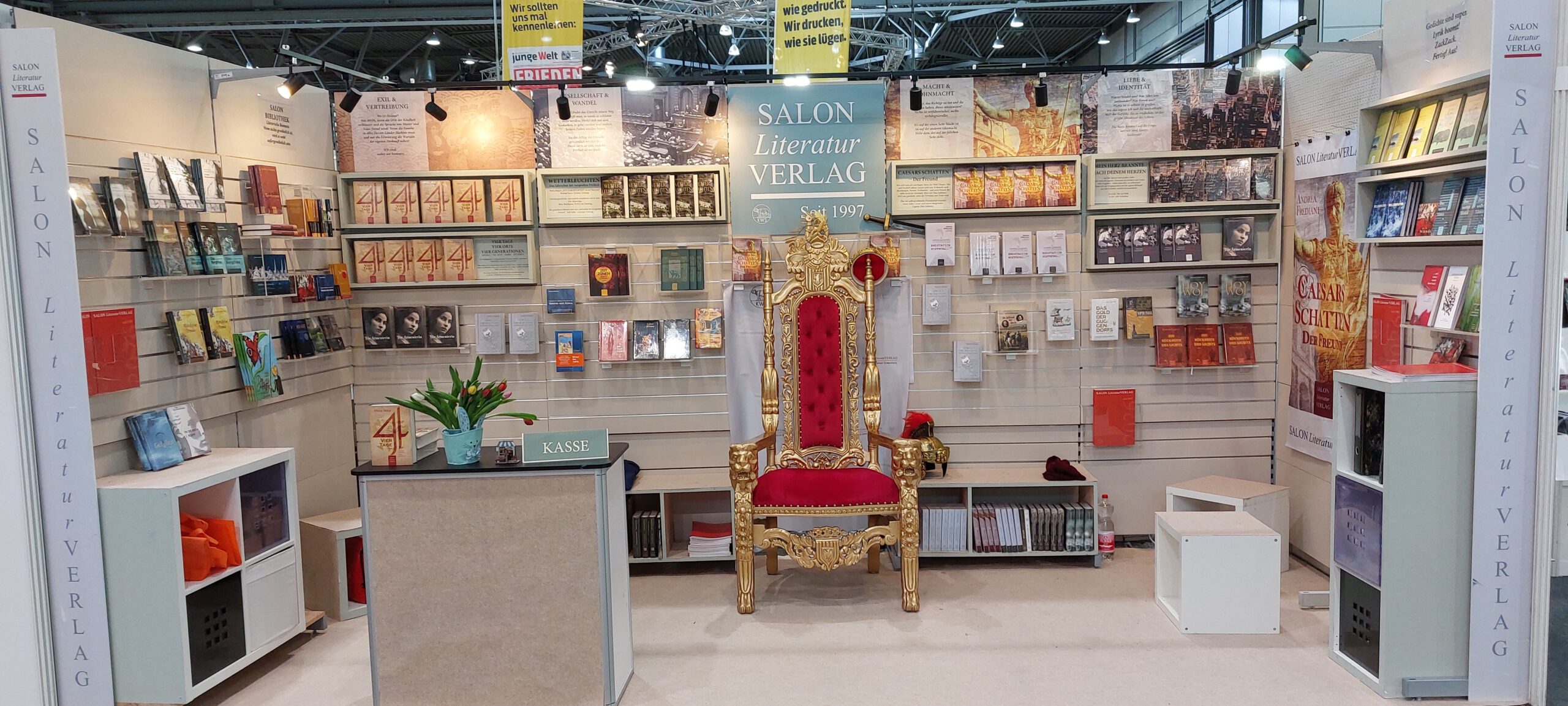 “Vier Tage” – nicht nur der Roman von Mona Yahia passte zum Messeauftritt. Von Donnerstag bis Sonntag freuten wir uns über den großartigen Zuspruch an unserem Stand und unseren Lesungen. Ob es am Thron lag, den wir für den Roman “CAESARS SCHATTEN – Der Freund” mit nach Leipzig gebracht hatten? Oder an unseren Autor*innen Mona Yahia, Ruth Neureiter, Simon Gerhol, Thomas Hartwig und Übersetzerin Sandra Hubmann? Oder am großartigen Zusammenwirken als Messeteam, allen voran mit Autor Simon Gerhol, der bei Aufbau, Verkauf, Standbetreuung und Abbau mehr als unterstützt hat, oder an Fran Portillo, der auch in diesem Jahr am E-Piano für die richtige Stimmung sorgte, und Autorin Jannette Hofmann, die zwar noch nicht zur Autorenfamilie des SALON LiteraturVERLAGs gehört, aber dafür beim Freien Deutschen Autorenverband auf sich aufmerksam gemacht hat. Allen dafür ganz herzlichen Dank. Und ganz sicher 2027 auf ein Neues, wenn der Verlag sein 30-jähriges Bestehen feiert!