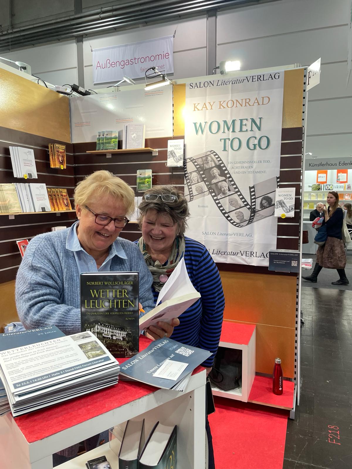 Der Alltag ist schnell zurück, aber ein wenig soll die Buchmesse noch einmal gefeiert werden, nicht nur die Autorinnen und Autoren, die an den Foren gelesen haben (Kay Konrad – Women to Go / Ioana Orleanu – Im Gold des Oktobers – in Vertretung für den erkrankten Walter Laufenberg / Simon Gerhol – Aufbruch zur Hoffnung / Norbert Wollschläger – WETTERLEUCHTEN – Das Jahrzehnt der verspielten Freiheit), oder die am Stand waren (Wolfgang David, Thomas Hartwig), sondern ganz besonders auch das Team des Messestands, das grandiose Arbeit geleistet und eine so einladende Stimmung geschaffen hat, dass sich das Publikum liebend gern bei uns aufgehalten hat.