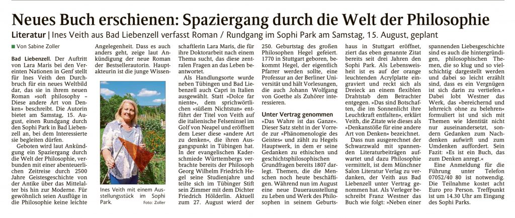 Schwarzwälder Bote, 14.8.2020Sabine Zoller “Der Auftritt von Lara Maris bei den Vereinten Nationen in Gefn stellt für Ines Veith den Durchbruch für ein…