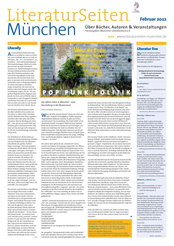 Jetzt doch – in ihrer Februar-Ausgabe veröffentlichten die LiteraturSeiten München die Erzählung “Noch nicht!” unserer Autorin Tania Rupel Tera. Eine Geschichte über die…